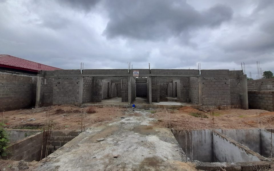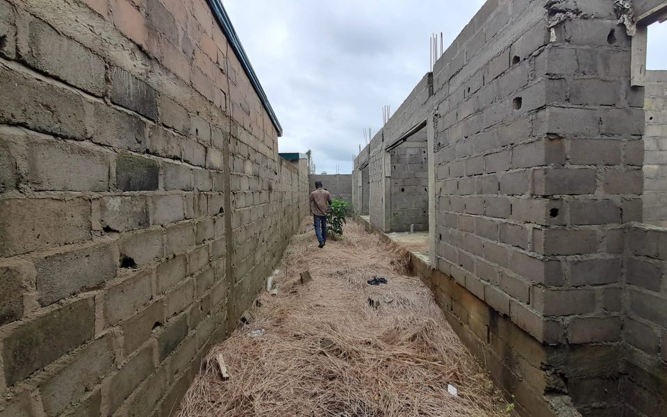 Un bâtiment inachevé prévu pour un r+2 avec le rez-de-chaussée déjà réalisé de 2 appartement 3piece avec cour avant et arrière sis à 8kilo