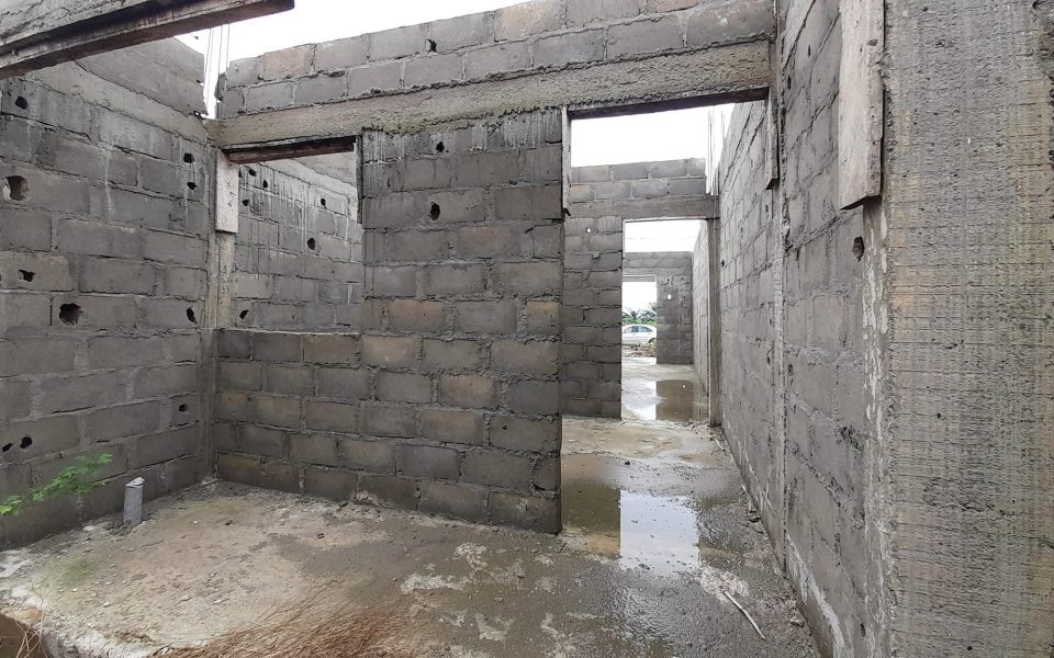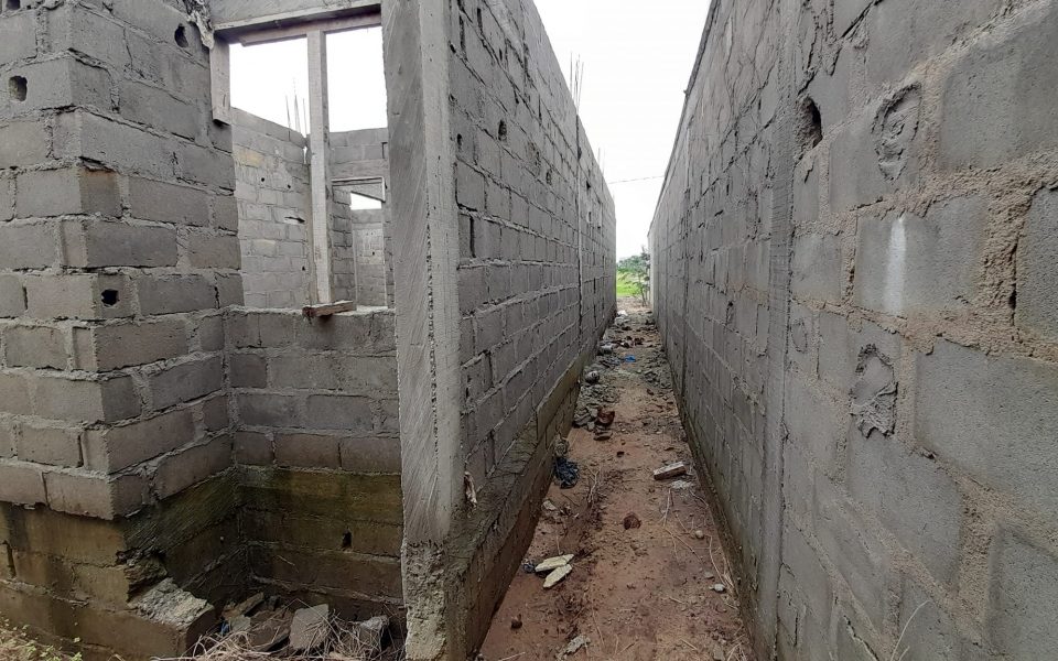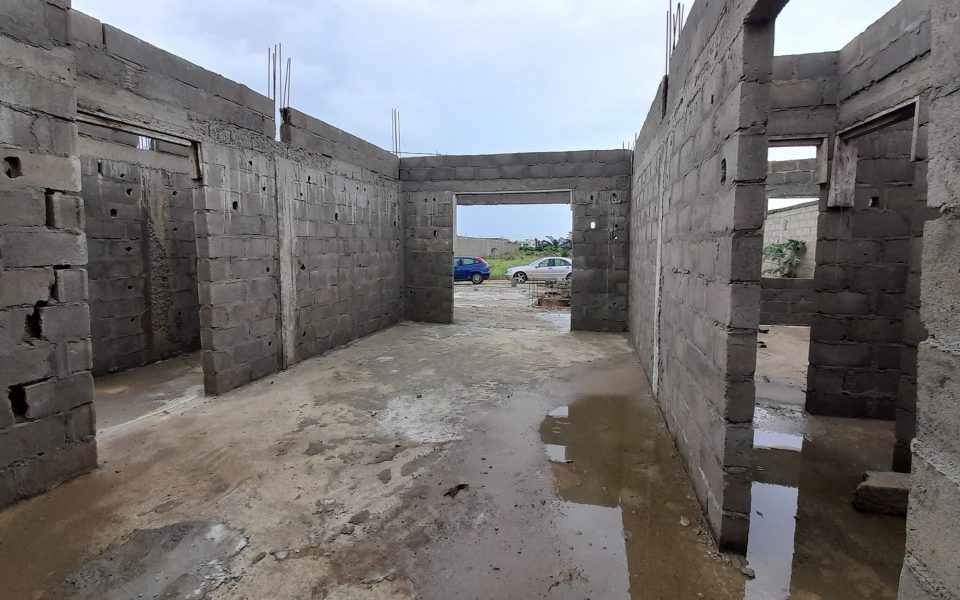 Un bâtiment inachevé prévu pour un r+2 avec le rez-de-chaussée déjà réalisé de 2 appartement 3piece avec cour avant et arrière sis à 8kilo(route de bonoua)en bordure de voie bâti sur 500m² .